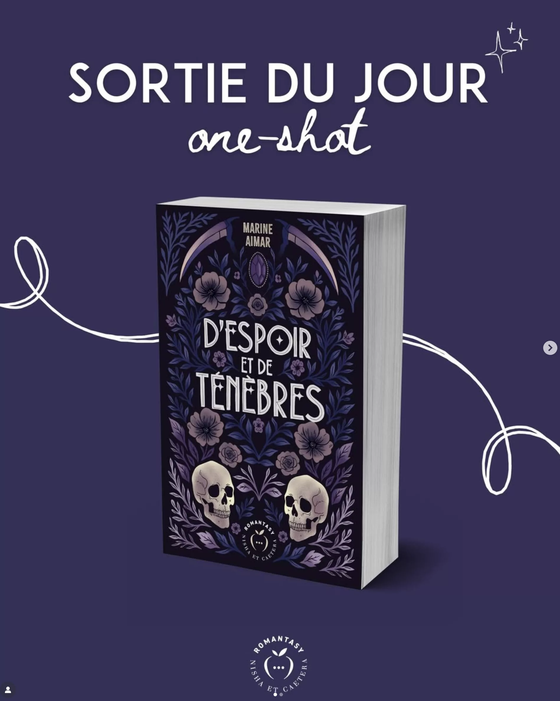 Découvrez dès aujourd’hui en librairie D’espoir et de ténèbres, la romantasy de @marineaimar_ ! 💜